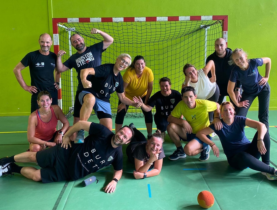 - Basée sur des séances construites autour d'une variété d'ateliers de renforcement musculaire, de coordination, de mobilité-souplesse, de jeux et de hand bien sûr !